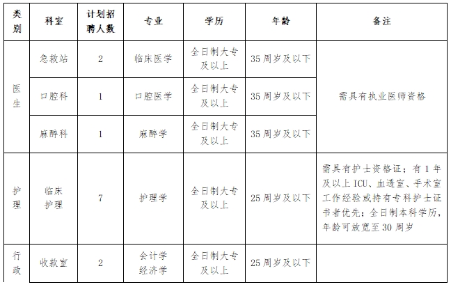 三、招聘崗位及要求類別科室計(jì)劃招聘人數(shù)